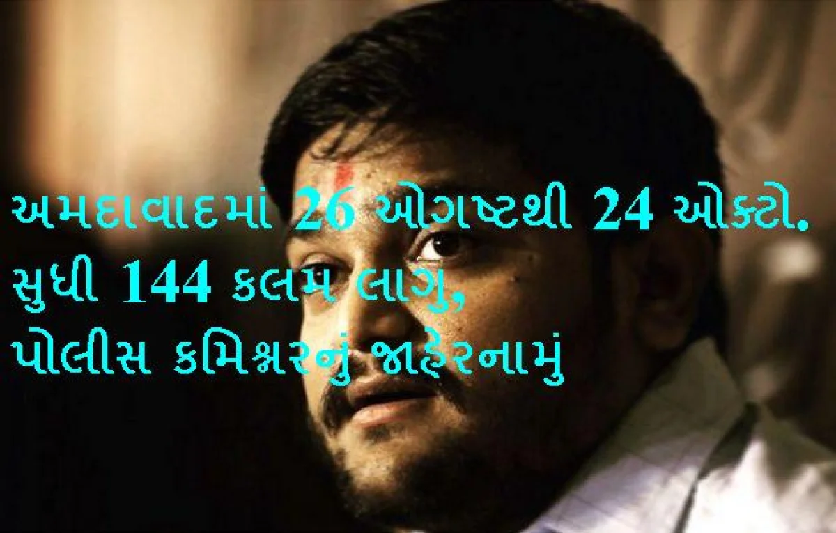 હાર્દિકનાં ઉપવાસ પહેલાં જ પોલીસનો તખ્તો અગાઉથી તૈયાર કરી દેવાયો છે. શહેરમાં કલમ 144 લાગુ કરવાની મહત્વની જાહેરાત કરાઇ છે. શહેર પોલીસ કમિશ્નરે આ મામલે જાહેરનામું બહાર પાડ્યું છે. તારીખ 26 ઓગષ્ટથી 24 ઓક્ટોબર સુધી 144 કલમ લાગુ કરાશે. અસામાજીક તત્વોને ધ્યાને રાખી પો.કમિશરનું આ જાહેરનામું બહાર પડાયું છે. 60 દિવસ સુધી શહેરમાં કલમ 144 લાગુ રહેશે. શહેરમાં 4થી વધુ લોકોને એકઠા થવા પર પણ પ્રતિબંધ લગાવવામાં આવશે. મહત્વનું છે કે 25 ઓગષ્ટનાં રોજ હાર્દિક આમરણાંત ઉપવાસ આંદોલન કરવા જઇ રહેલ છે. ત્યારે હાર્દિકનાં ઉપવાસ પહેલાં જ શહેરમાં પોલીસનો તખ્તો તૈયાર કરી દેવાયો છે. ત્યારે 26 ઓગષ્ટથી 24 ઓક્ટોબર સુધી 144 કલમ લાગુ રહેશે. જેમાં શહેરમાં ક્યાંય પણ જો અસામાજીક તત્વો દેખાશે તો તેને ધ્યાનમાં રાખીને કાર્યવાહી થઇ શકે છે.