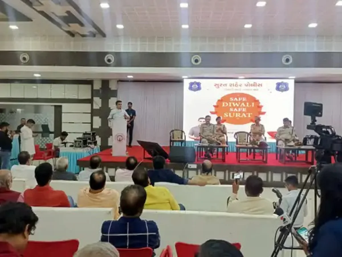 દિવાળી પર્વને લઈ શહેરમાં અનેક પ્રકારની ન બનવાની ઘટનાઓ બનતી હોય છે. ચોરી, લૂંટ, ચેઇન સ્નેચિંગ, ધાડ જેવી ઘટનાઓ બનતી હોય છે. આવી બધી ઘટનાઓથી અવગત કરાવવા અને સાવચેત કરાવવા માટે સુરત શહેર પોલીસ દ્વારા શહેરની જનતાને, પ્રબુદ્ધ નાગરિકો વેપારીઓને સાથે રાખી જાગૃતિ કાર્યક્રમ યોજાયો હતો. જેમાં ગૃહ રાજ્ય મંત્રી હર્ષ સંઘવી પણ જોડાયા હતા. તેમની ઉપસ્થિતિમાં શહેરીજનોને પોતાને સુરક્ષિત રહેવા માટેની તમામ બાબતોથી અવગત કરાવ્યા હતા. દરમિયાન સુરત પોલીસ દ્વારા જુદી જુદી રીતે લોકો સાથે થતા ફ્રોડ અને ઘટનાઓથી બચવા માટેના ઉપાયો બતાવ્યા હતા.મુખ્યમંત્રીના માર્ગદર્શનમાં એક મહત્વનો નિર્ણય લેવામાં આવ્યો છે. આજથી ચાલુ થઈને આવનાર 27 તારીખના રાત્રિના 12 વાગ્યા સુધી ટ્રાફિક પોલીસ દ્વારા કોઈપણ પ્રકારનો દંડ ગુજરાત પોલીસ દ્વારા ગુજરાતમાં ઉઘરાવવામાં આવશે નહીં.