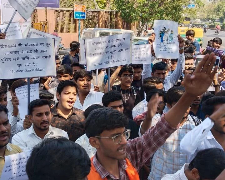 સંદેશખાલીમાં મહિલાઓ પરના અત્યાચારને પગલે ABVPએ મમતા બેનર્જીનું પૂતળું બાળ્યું